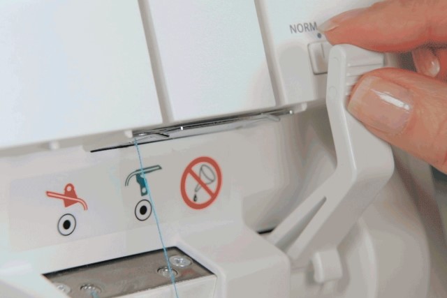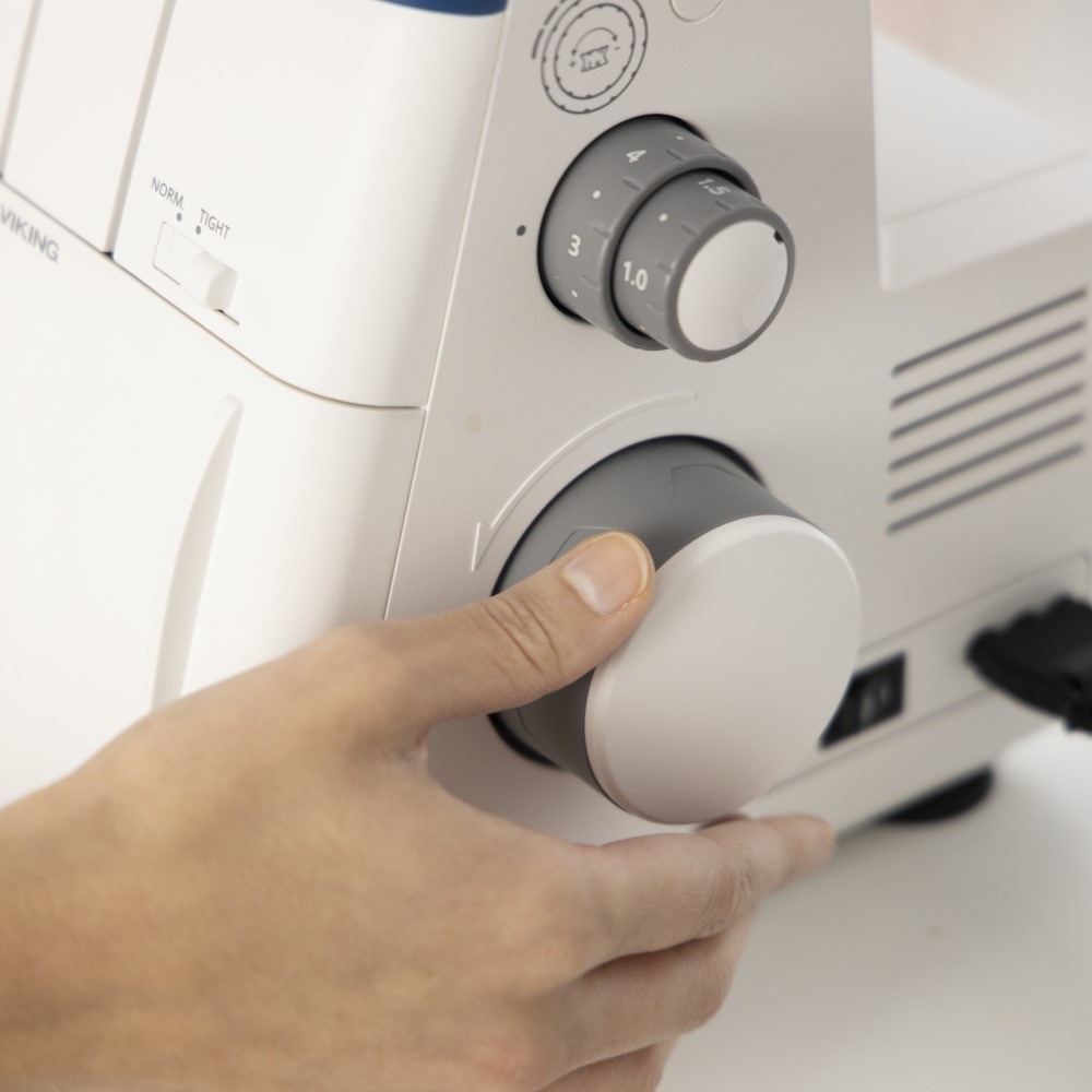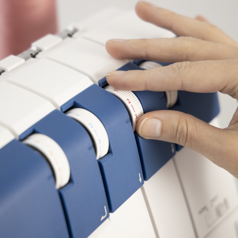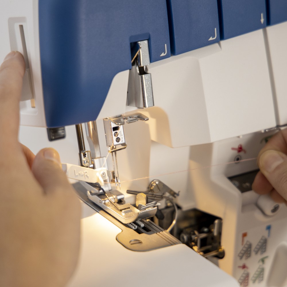 Schakel uw overlockmachine eenvoudig over op 2-draads naaien met de ingebouwde converter.