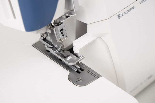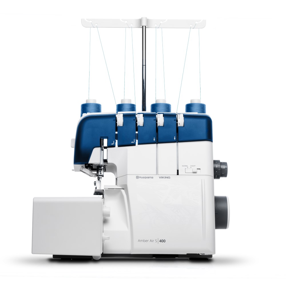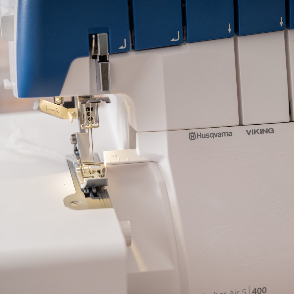 Met de HUSQVARNA® VIKING® AMBER™ Air S|400 one-touch luchtinrijg-overlockmachine, is het inrijgen van de grijpers van uw overlockmachine kinderspel.