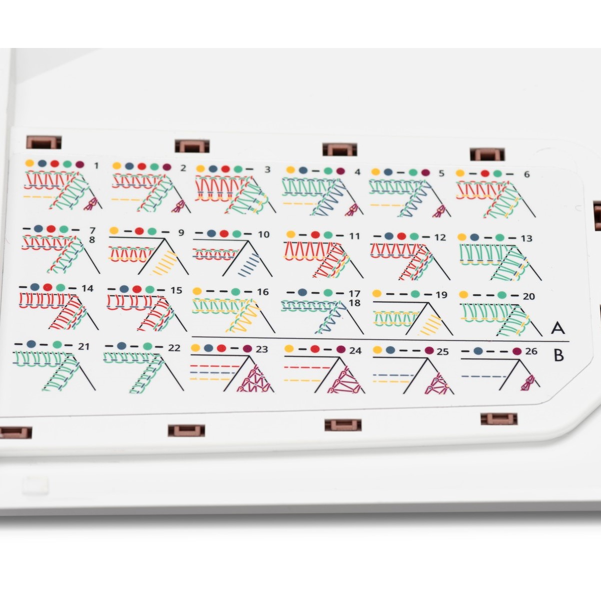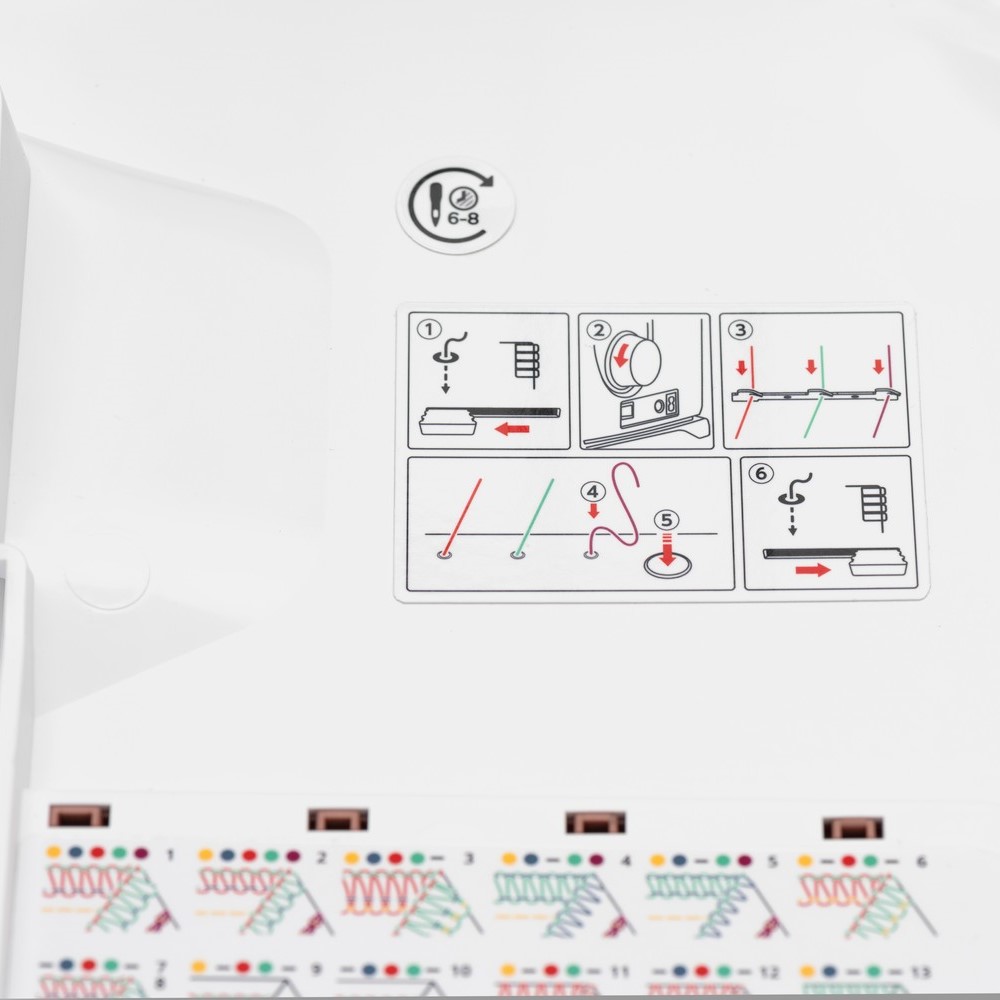 De mogelijkheid om met 5/4/3/2 draden te naaien, geeft u 26 verschillende steekopties voor veel verschillende naaitechnieken. Bekijk ze hier>> allemaal.