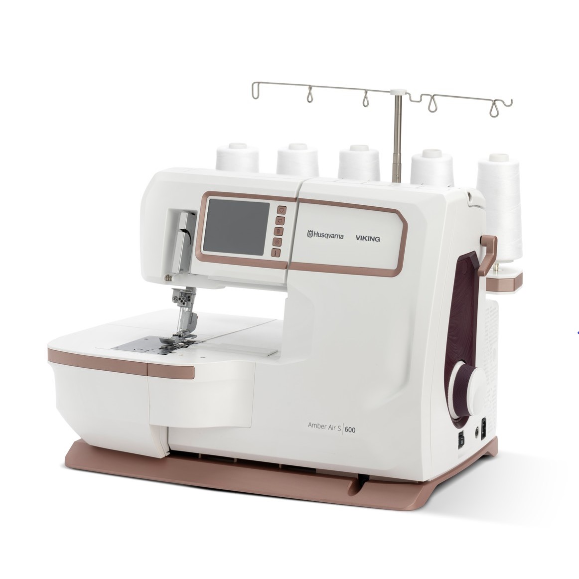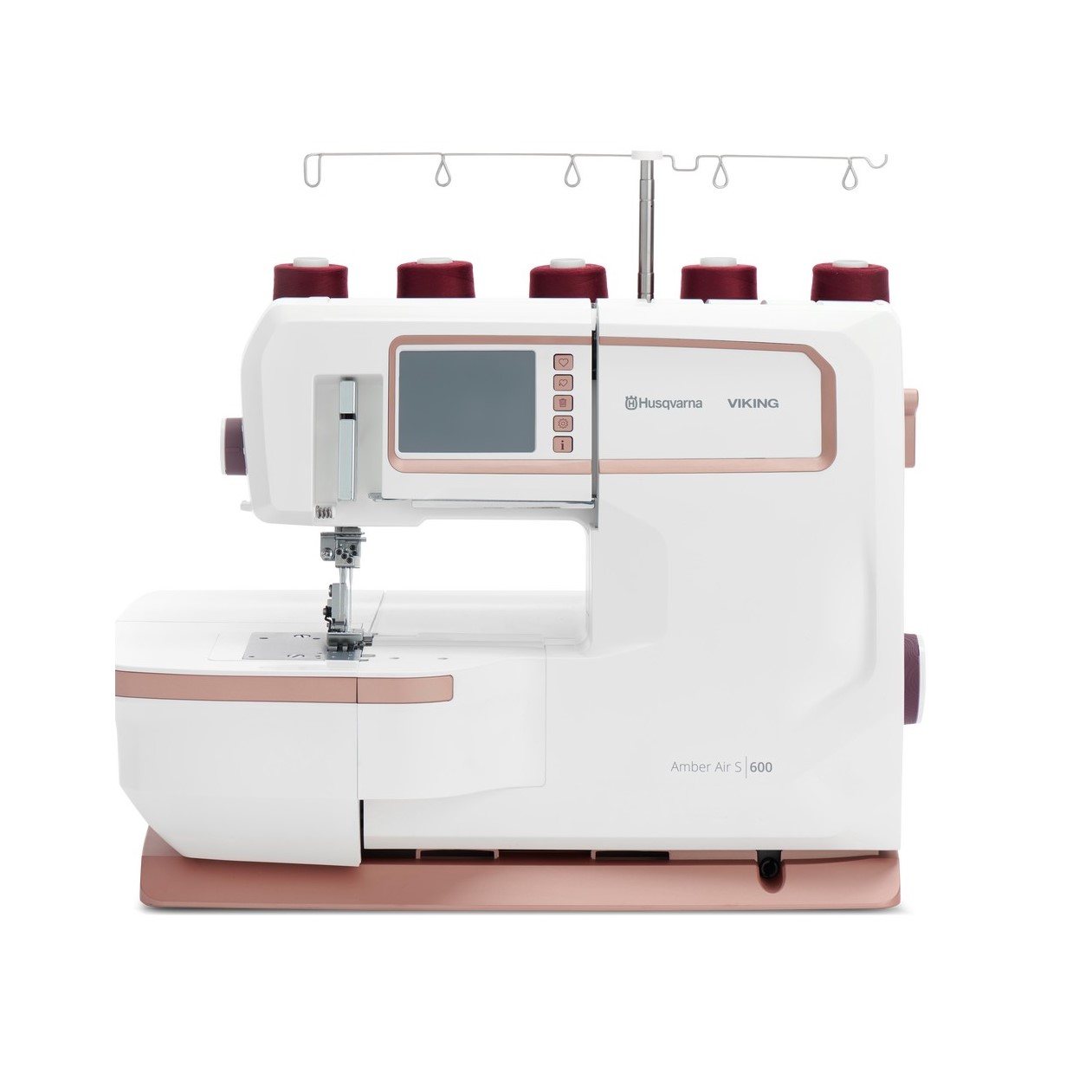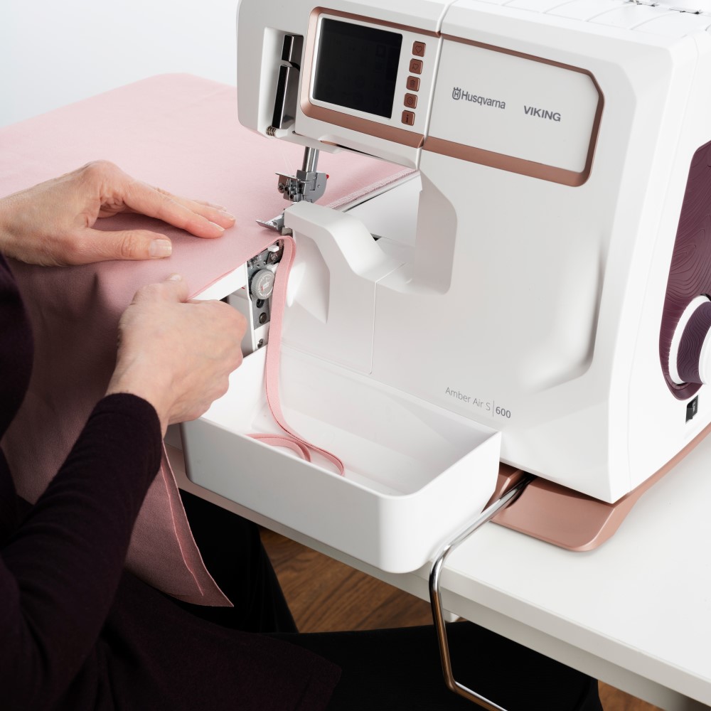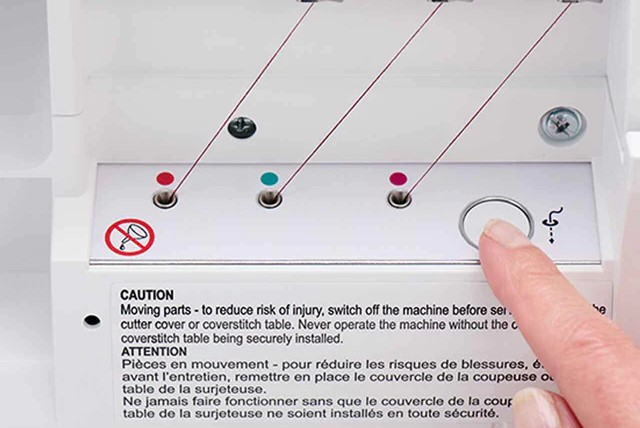 Met het HUSQVARNA® VIKING® AMBER™ Air S|600 one-touch luchtinrijgsysteem kunt u de grijperdraden moeiteloos inrijgen met één eenvoudige druk op een toets.