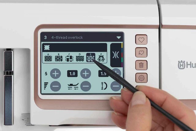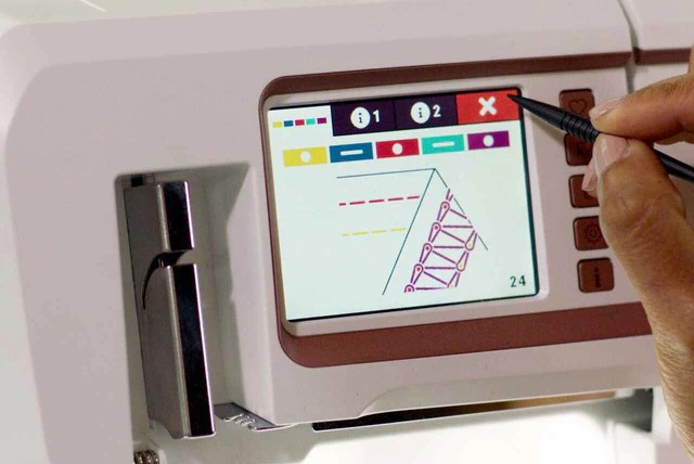 Selecteer uw steek en de optimale draadspanning, aanbevolen steeklengte en meer worden weergegeven op het kleuren-touchscreen.
