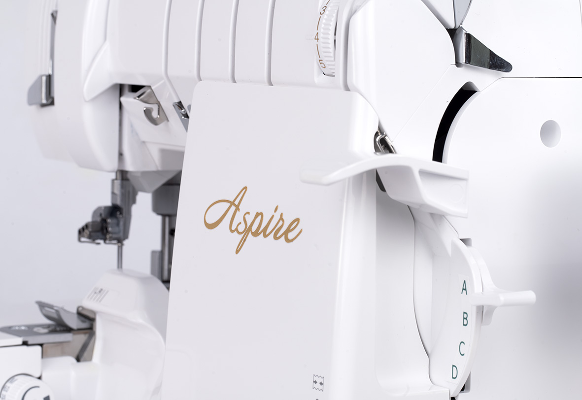 De Aspire scoort punten met de handige hoeveelheid ruimte rond de naaldstang en doorgang. Dit maakt niet alleen het inrijgen gemakkelijker. De extra ruimte betekent ook dat ons complete assortiment coverlockaccessoires kan worden gebruikt op de Aspire.