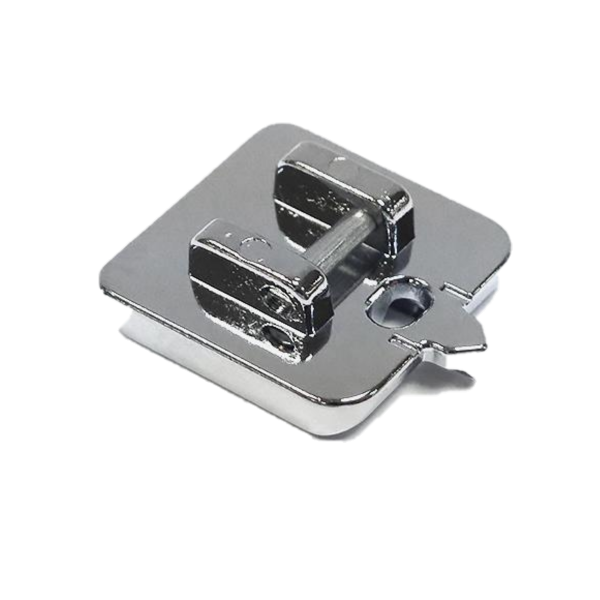 - Houd de rits met uw vingers op zijn plaats en breng het naaivoetje omlaag met de ritstenen in de rechter gleuf van het voetje.