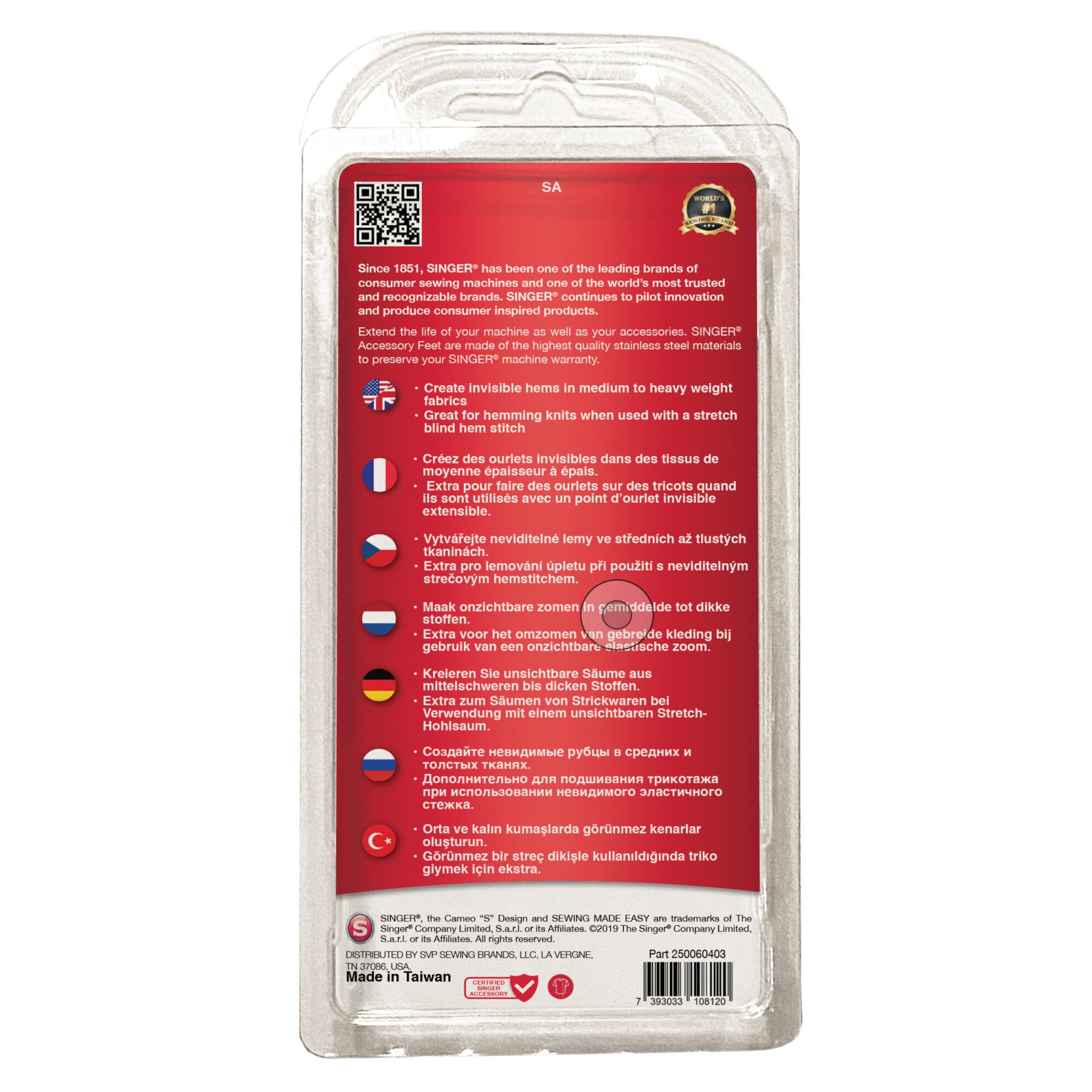 Voor uw overlockmachine. Zoom, werk de rand van de stof af en snijd de stof af in één eenvoudige stap. Maak blinde zomen in normale tot dikke stoffen.