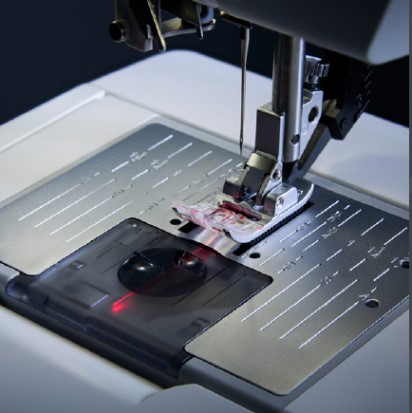 Signaleert wat onder de naaivoet ligt en welke instellingen u heeft gemaakt om de draadtoevoer nauwkeurig te regelen voor prachtige steekresultaten.