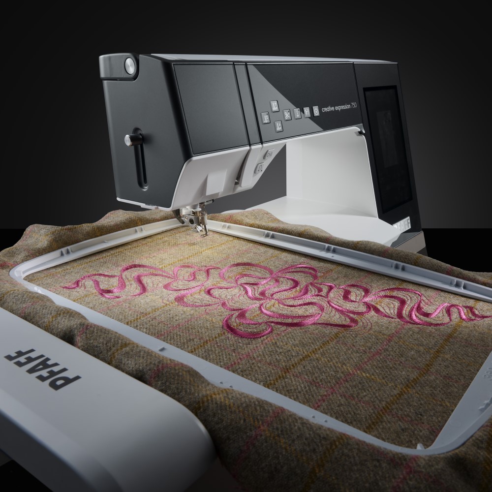 Voor degenen die alles willen, biedt de naai- en borduurmachine creative expression™ 750 krachtige borduurmogelijkheden, een groot borduuroppervlak, scannen van borduurringen en ActivStitch™-technologie.