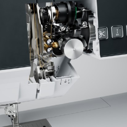 Voert alle soorten stof nauwkeurig van boven en van onder door, zodat u altijd perfecte steken krijgt, zonder dat u extra accessoires nodig hebt.