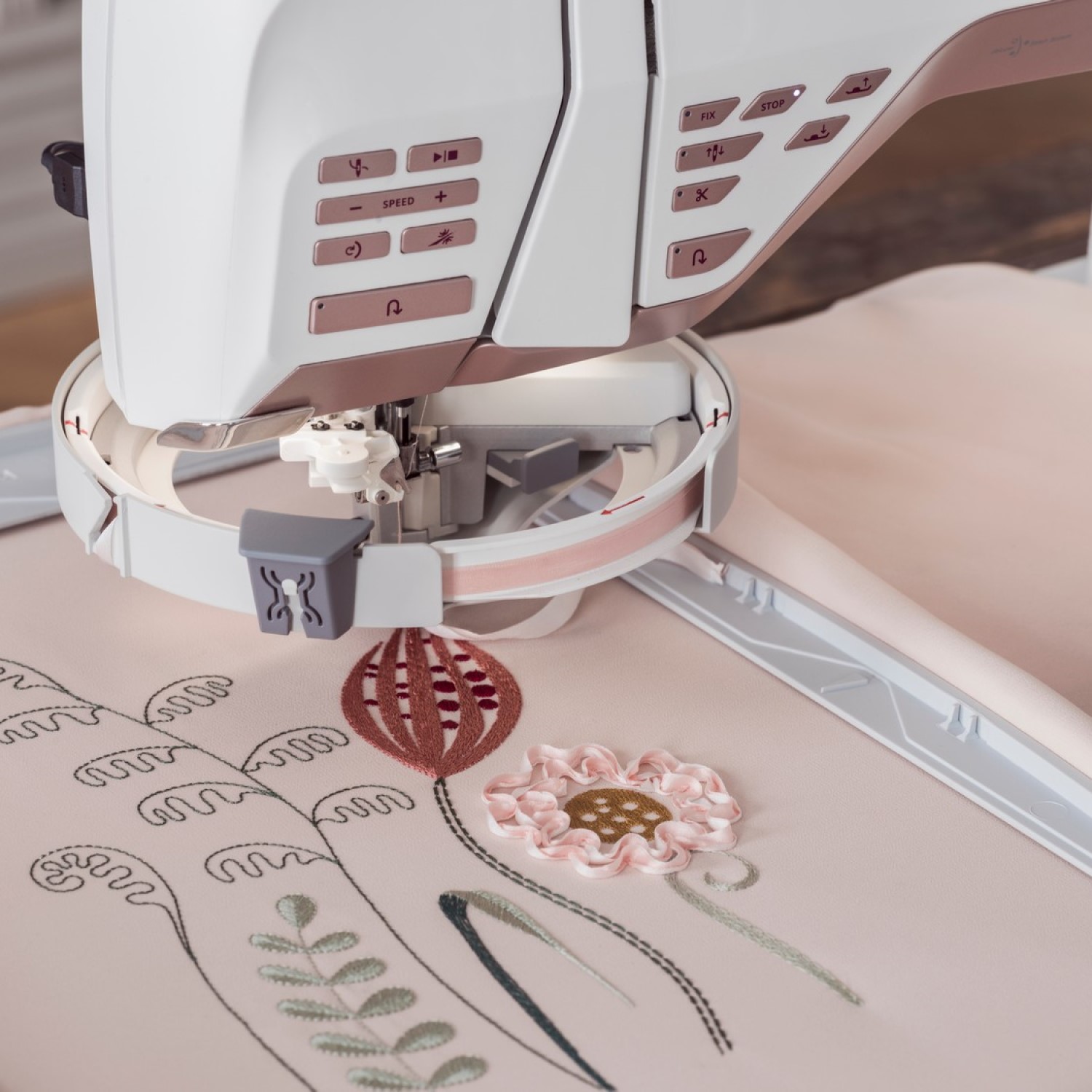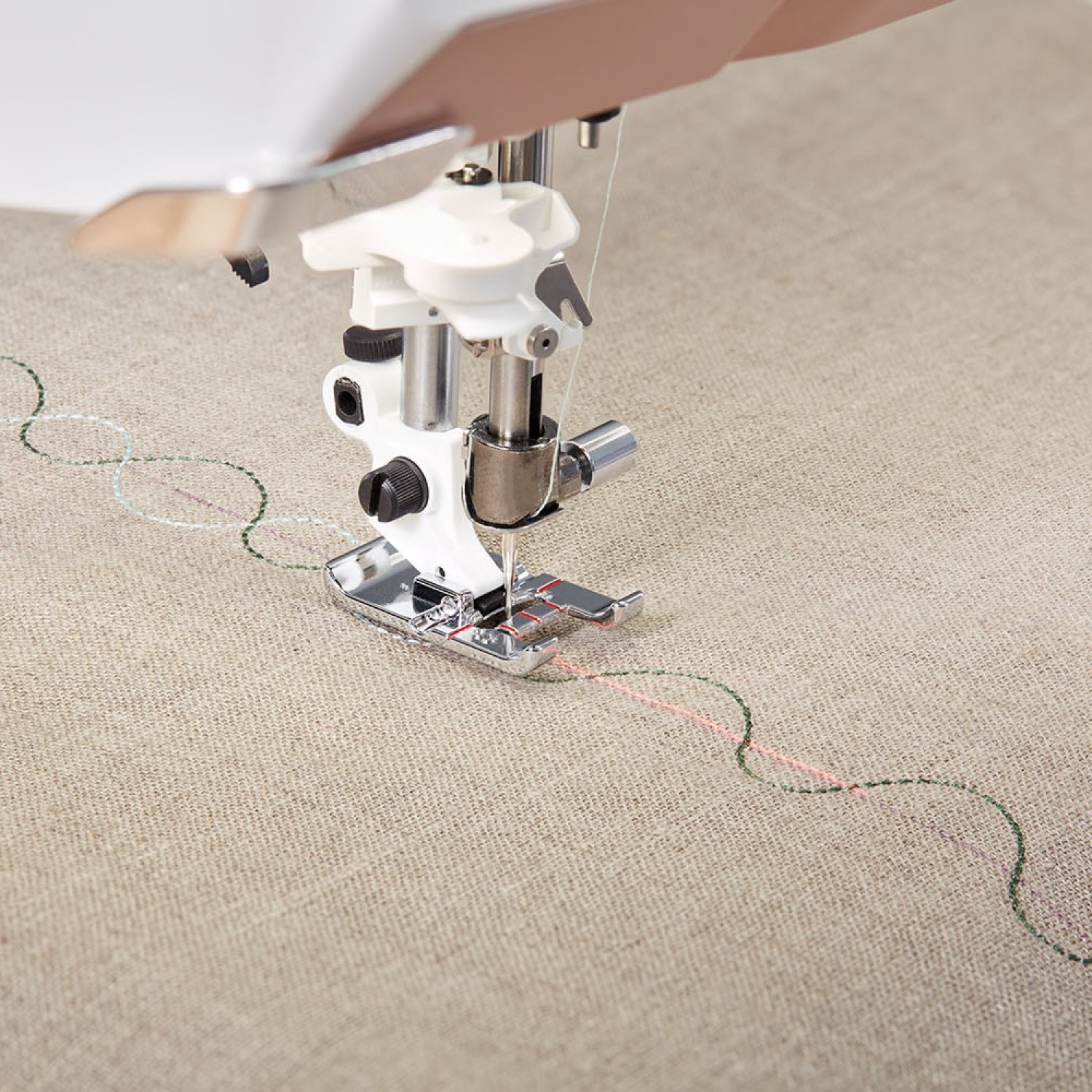Top-of-the line naai- en borduurmachine! Geschikt voor mySewnet™; o.a. gratis cloud, handige apps, de Project Creator service en nieuwe ideeën als live feed direct op het scherm van uw machine. Automatische updates dankzij wifi. De JoyOS ADVISOR™ biedt u ongelooflijk veel hulp direct op het scherm. Het deLuxe™ Stitch System zorgt voor een perfect borduurresultaat aan beide kanten van de stof. Dubbel stoftransport, instelbare lasernaaigeleider, volautomatische draadinsteker. Unieke optionele accessoires mogelijk zoals een lintborduurapparaat, multifunctioneel voetpedaal en DESIGNER™ Majestic Hoop (360×350 mm) voor grote ideeën!