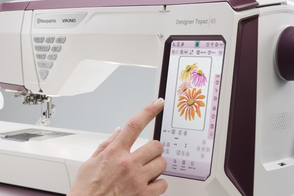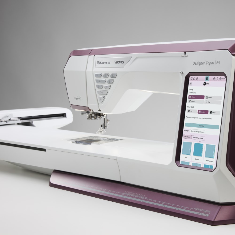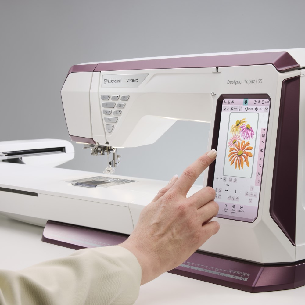 De DESIGNER TOPAZ™ 65 naai- en borduurmachine heeft alles wat de TOPAZ 55Q te bieden heeft plus de mogelijkheid om te borduren met o.a. een groot borduuroppervlak, Exacte Positie en borduurmotieven met speciale technieken.