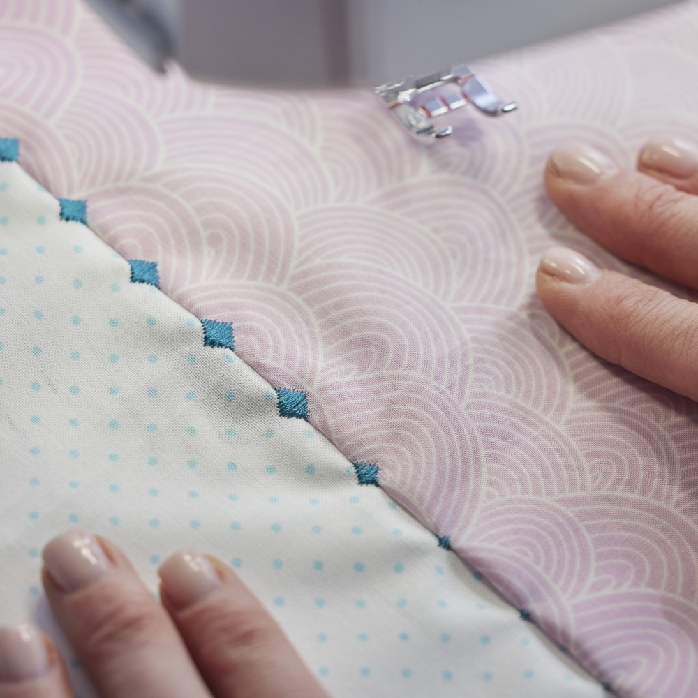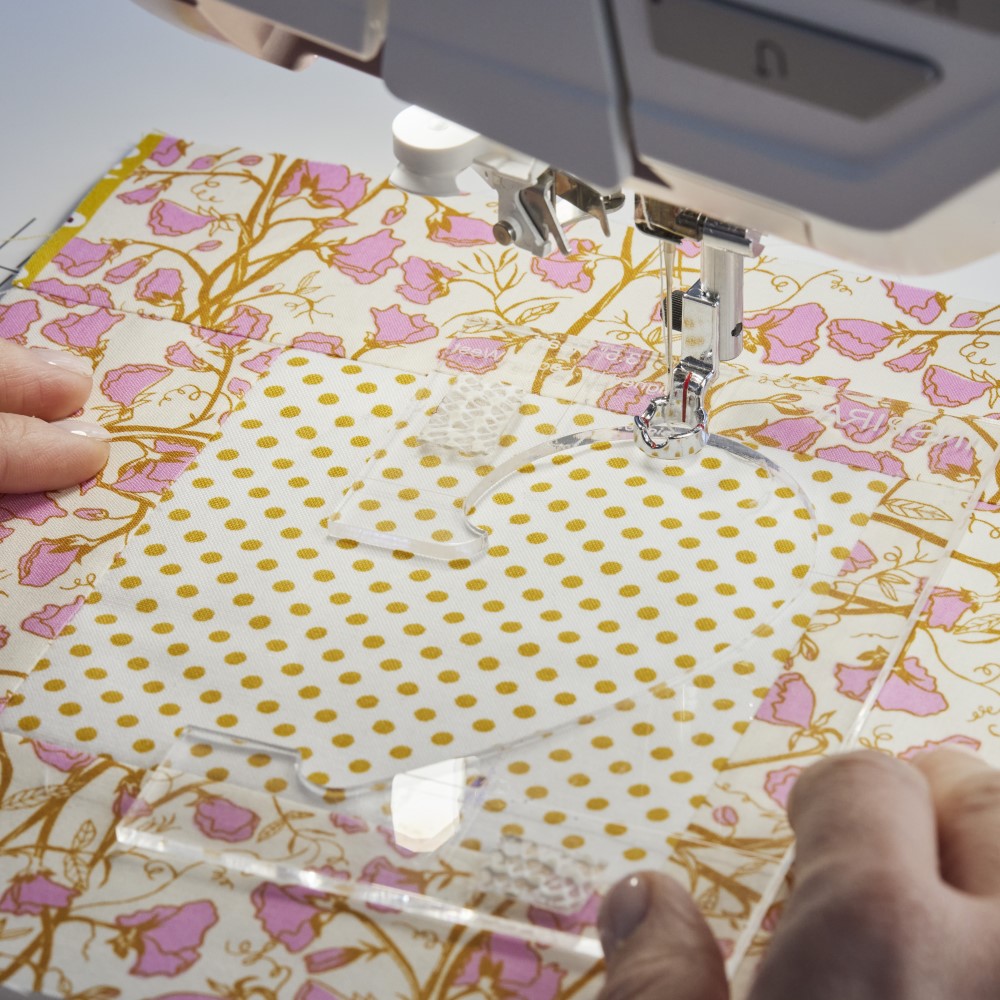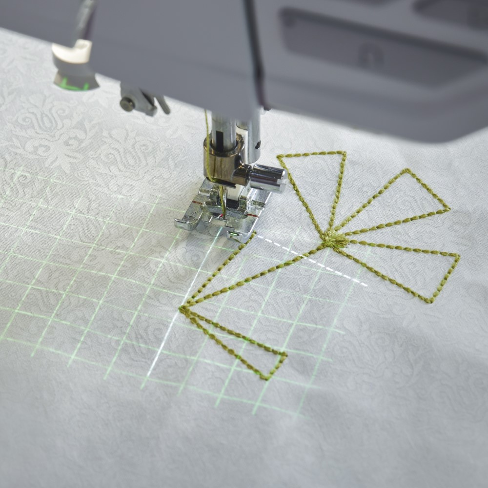 Met de functie Steekvoorbeeld projecteert u wat u van plan bent op de stof te naaien voordat u gaat naaien of kunt u uw naaiwerk eenvoudig uitlijnen met handige lijnen met instelbare hoeken en rasters van instelbare afmetingen. Zo krijgt u altijd perfect geplaatste steken en wordt kostbare tijd bespaard.
