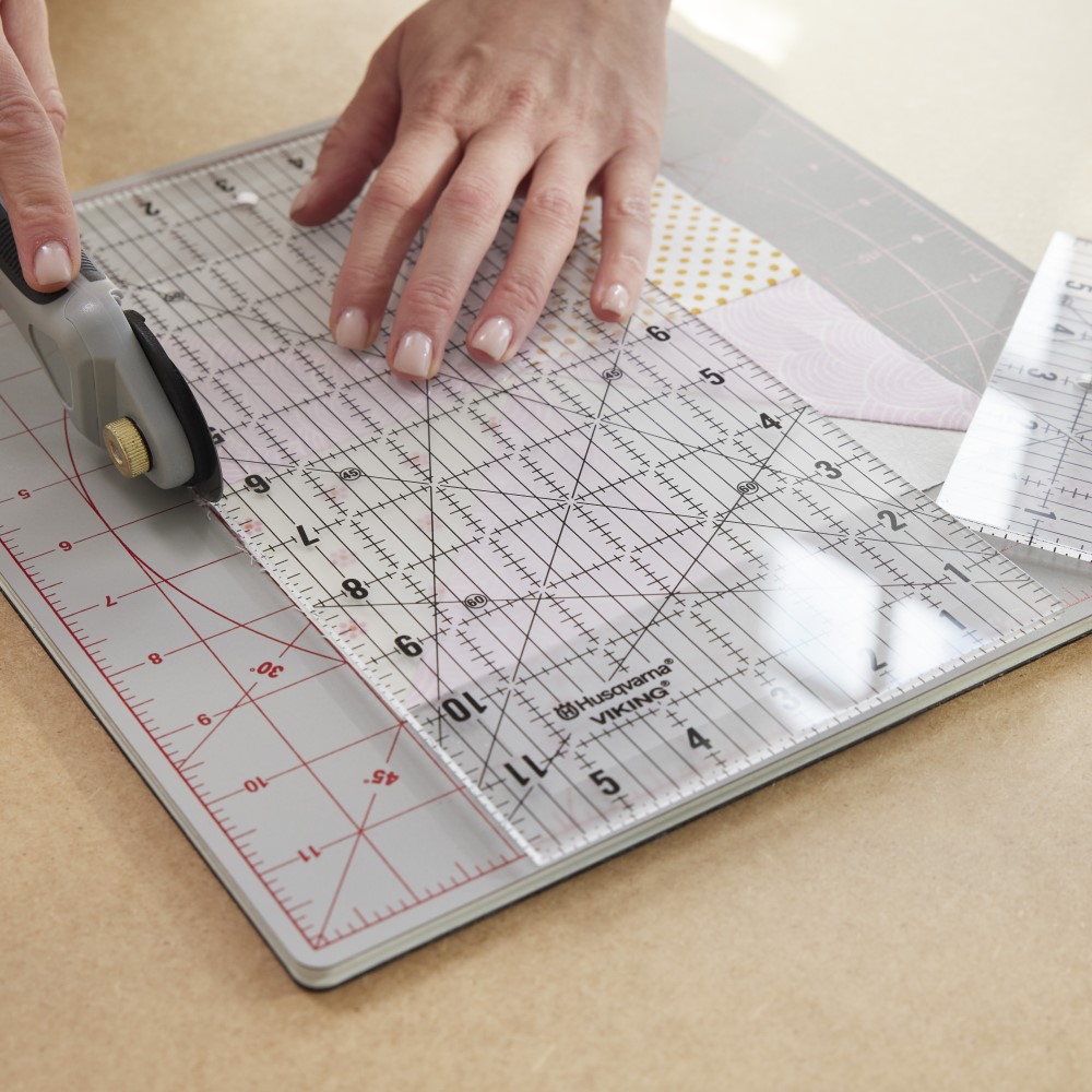 • Quilting Kit (Bevat: Zelfherstellende snijmat, roterend snijgereedschap en reservemesjes, linialenset en naalden)