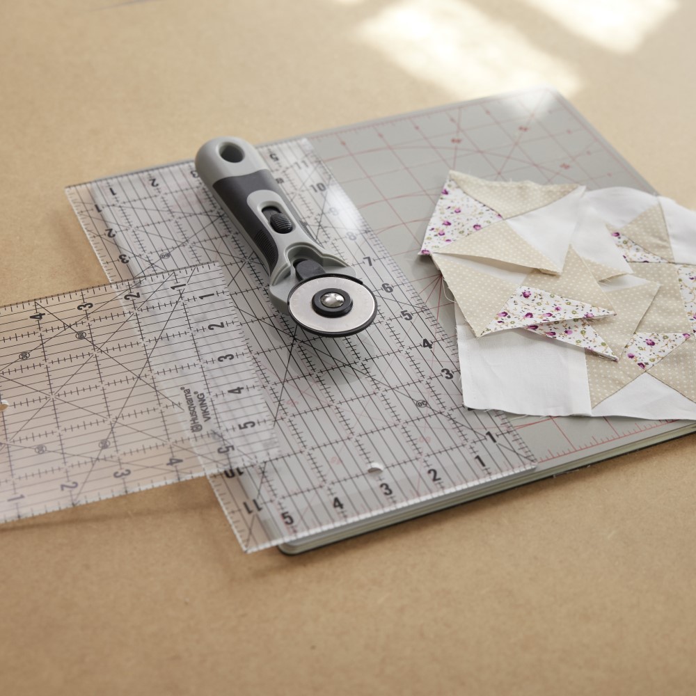 - Quilting Kit (Bevat: Zelfherstellende snijmat, roterend snijgereedschap en reservemesjes, linialenset en naalden)
