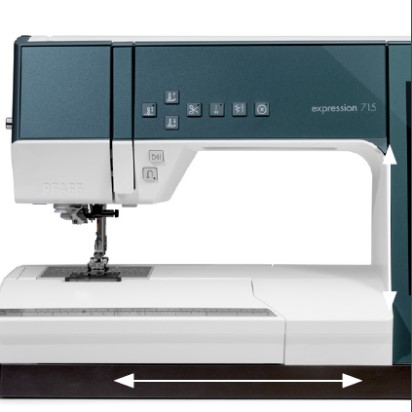 De machine is de perfecte keuze voor alle soorten naaiwerk. Het naaioppervlak rechts van de naald is bijna 250 mm!