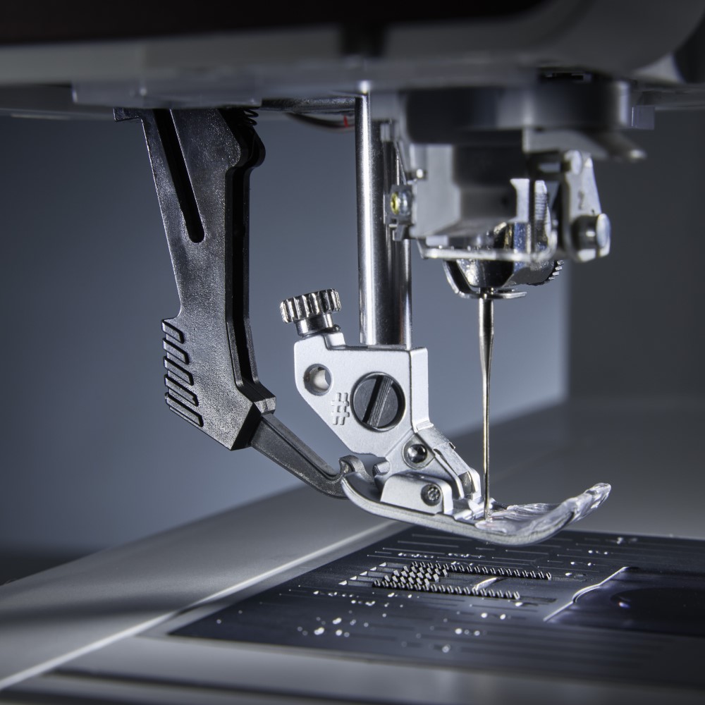 Voert alle soorten stof nauwkeurig van boven en van onder door, zodat u altijd perfecte steken krijgt, zonder dat u extra accessoires nodig hebt.