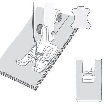 Bij het naaien van schuimrubber, kunststof, stoffen met kunststof coating, leer en imitatieleer wordt de glijvoet H soepel over de stof getransporteerd zonder aan de stof te blijven plakken. Gebruik deze voet voor het naaien en het maken van knoopsgaten in kunststof en leerachtige stoffen.