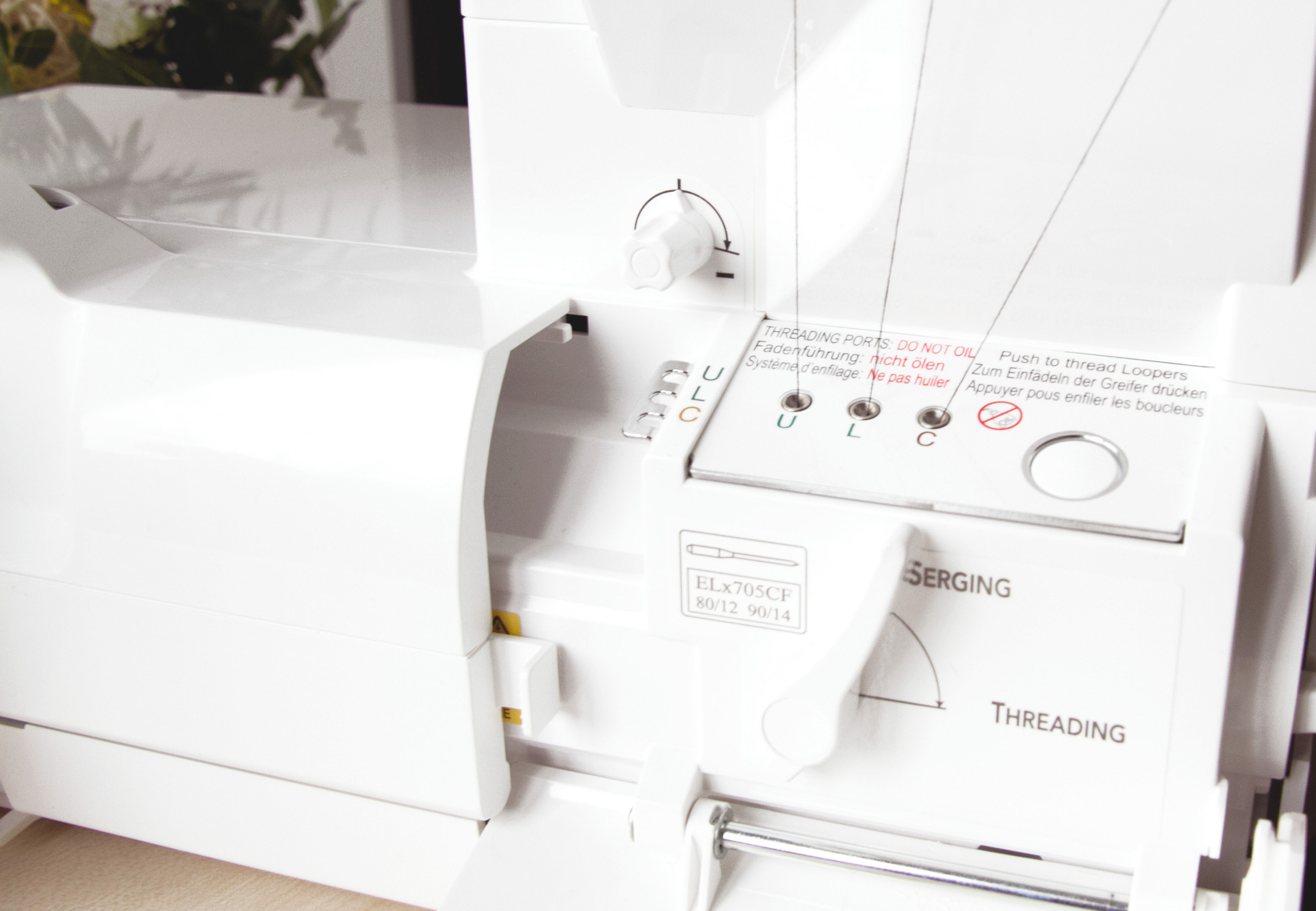 Draadroute en draadgeleiders zijn verder geoptimaliseerd op de Gloria. De naalddraadgeleider is vereenvoudigd en het draadroute voor de ketting-/en covergrijper is verbeterd. Er is een klein oogje om de ketting-/en covergrijper te omzeilen. Dit maakt het nog makkelijker om volumineus garen of andere dikkere fantasiegarens in te rijgen.