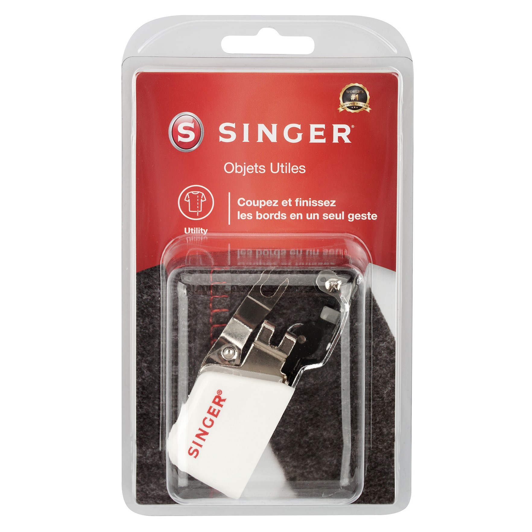 Gelijktijdig afsnijden en zomen tijdens het naaien van een naad. Het mesje snijdt de stof af terwijl u de naad naait en werkt de rand af.