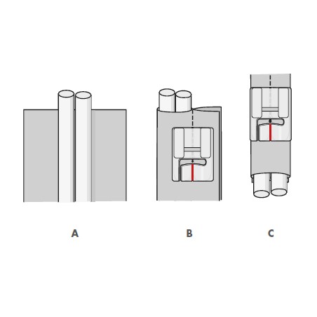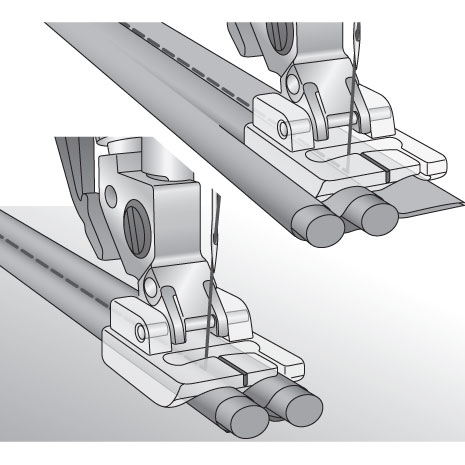 - Leg het bedekte koord onder de twee uitsparingen van de naaivoet en naai het koord op uw werk. (afb. C)