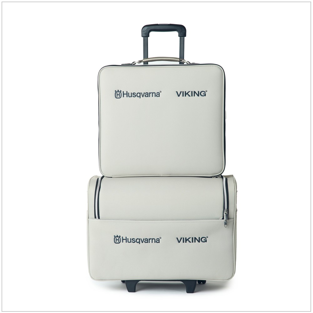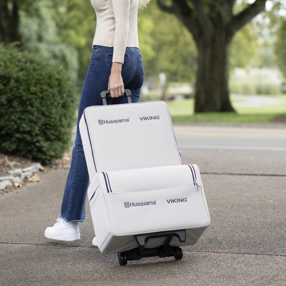 Ontworpen om de HUSQVARNA® VIKING® DESIGNER QUARTZ™ 29 naai- en borduurmachine te beschermen en te vervoeren. Tot de topklasse kenmerken behoren hoogwaardige stof en een verlenghandvat met wieltjes voor eenvoudig transport. De tas voor de borduureenheid heeft een riem aan de achterkant, waardoor hij gemakkelijk aan de tas voor de machine kan worden bevestigd. Inclusief grote vakken voor het opbergen van accessoires.