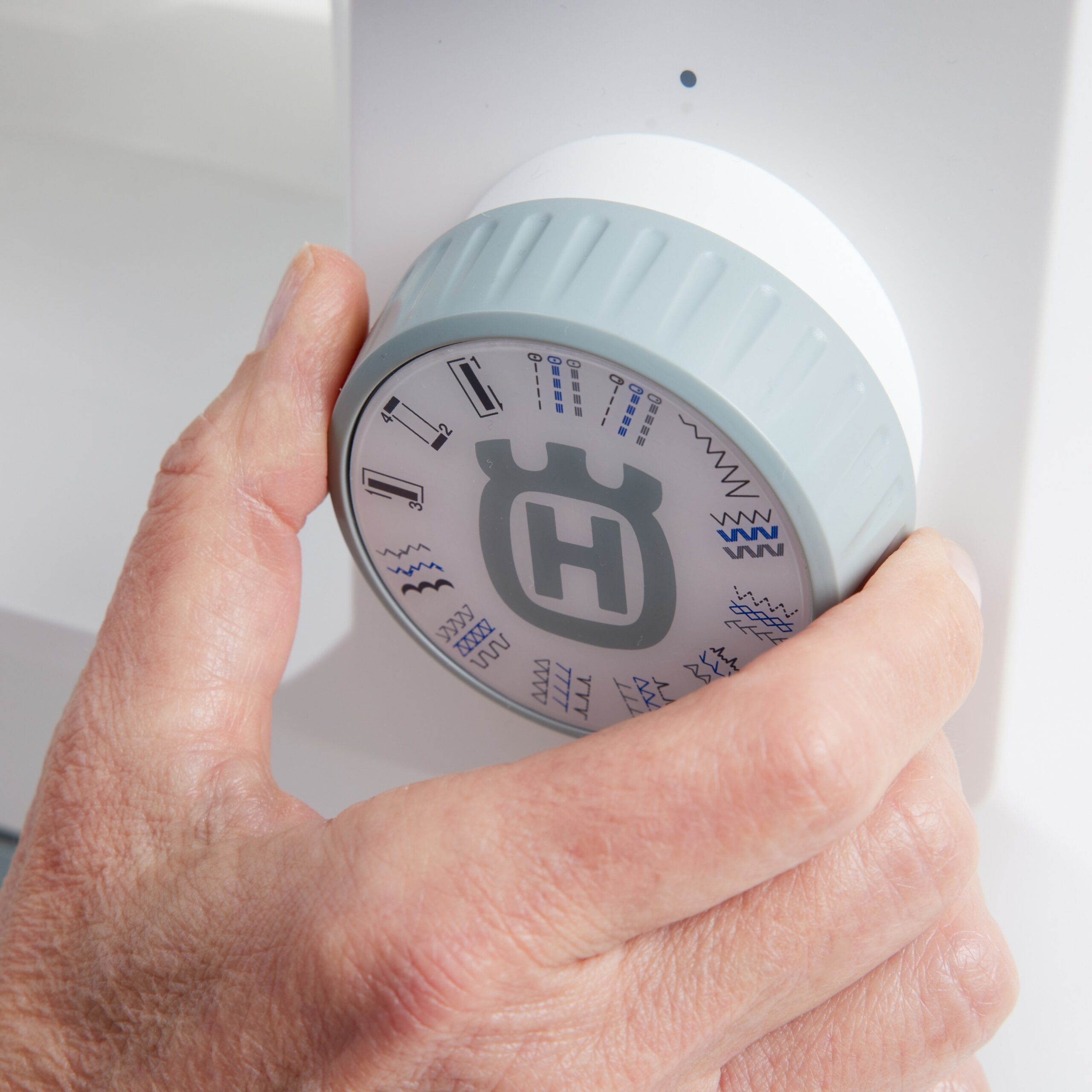 Het instellen van de steken is heel eenvoudig. Draai de knop om uw steek te kiezen.