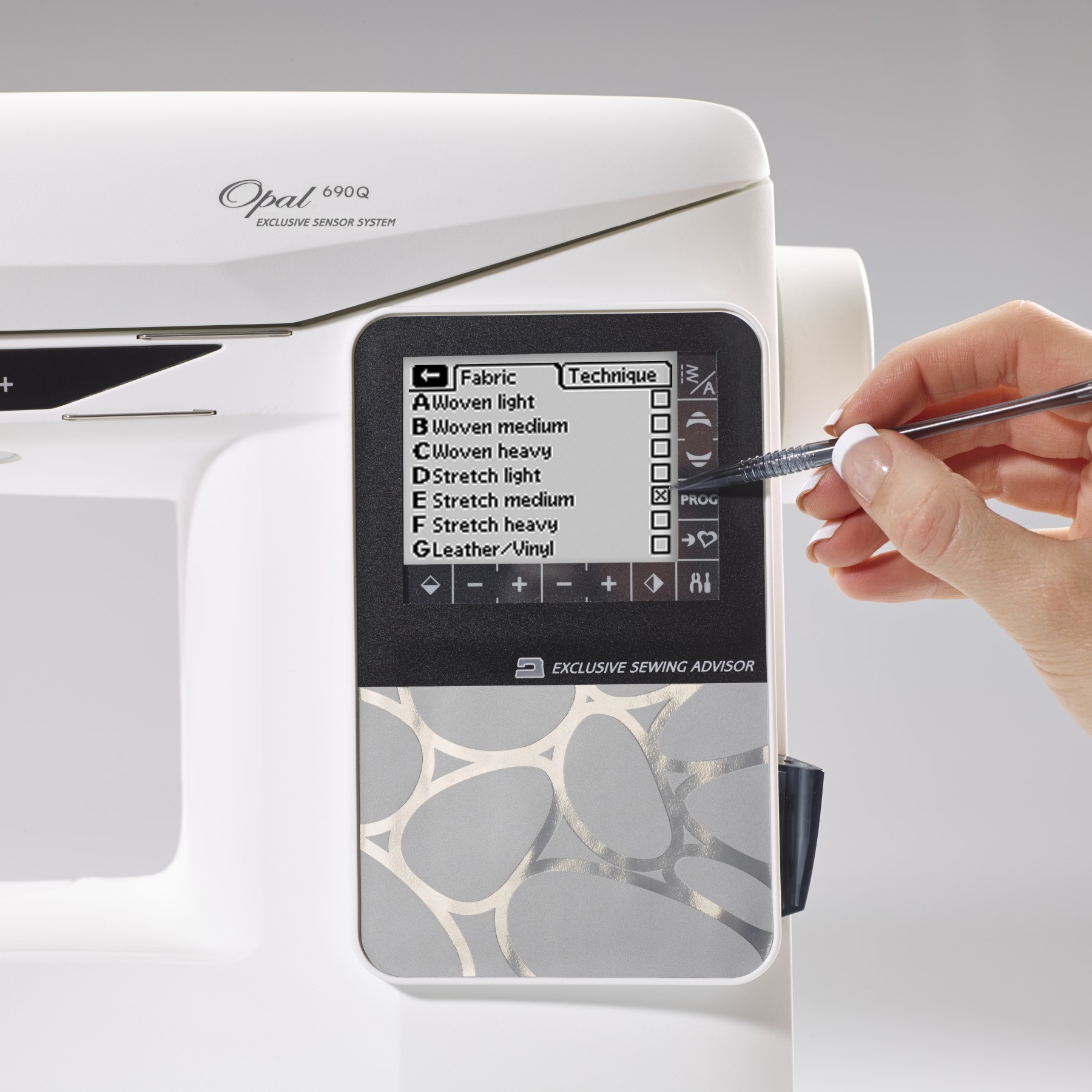 Selecteer uw type stof en uw naaitechniek en de exclusieve SEWING ADVISOR® functie stelt onmiddellijk alles voor u in.