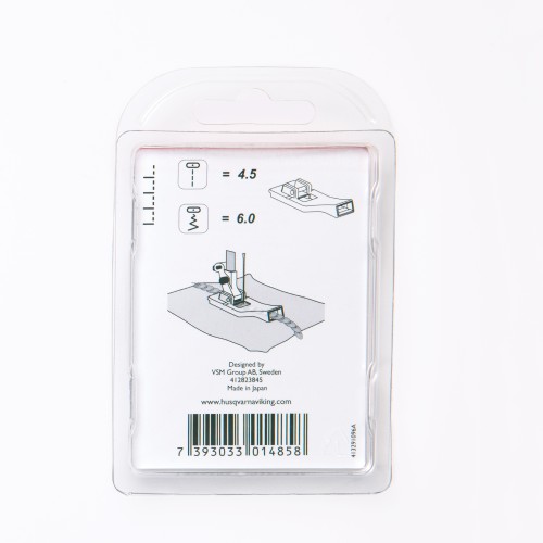 Versier uw project met glinsterende lovertjes met behulp van de platte lovertjesvoet. Deze voet leidt de lovertjes eenvoudig door een groef voorin de voet, waarna uw machine de lovertjes met een bijna onzichtbare steek vastnaait. U kunt alleen cirkelvormige lovertjes gebruiken.