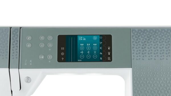 Ontvang alle belangrijke naai-informatie direct op het kleuren touchscreen. Het scherm heeft een hoge resolutie en is 70×53 mm groot.