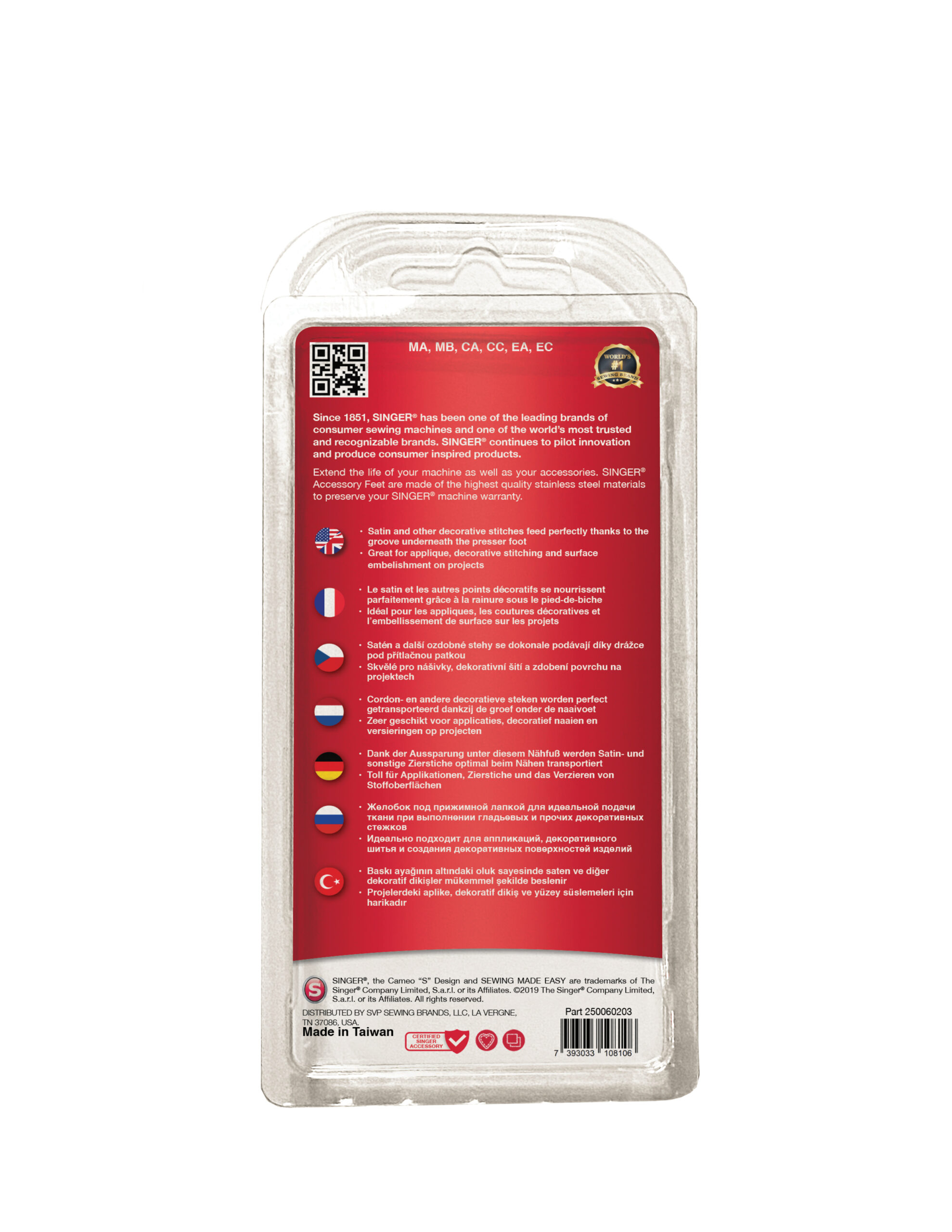 Cordon- en andere decoratieve steken worden perfect getransporteerd dankzij de groef onder de naaivoet