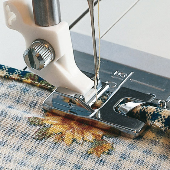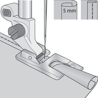 Voor het naaien van een smalle zoom in normale stoffen. Geschikt voor randen van servetten, gordijnen of kragen. Rechte steek, lengte 2,5 tot 3 (ook met siersteek).