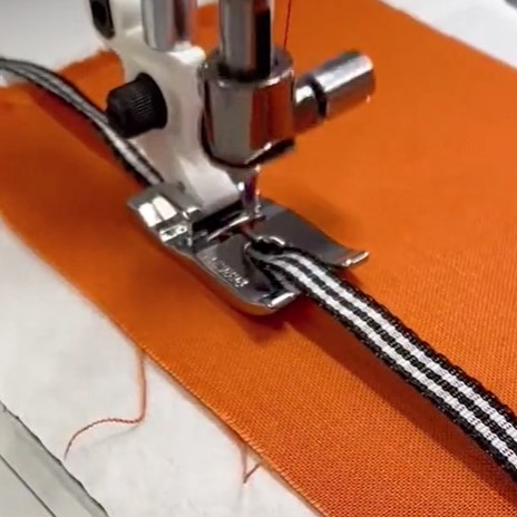 Voor het versieren van de stof met een soutachekoord of bandje. Eventueel verstevigen. Rechte steek, steeklengte 2,5 of zigzagsteek, breedte 2 tot 4, al naar gelang de breedte van bandje of koord (of gebruik een siersteek).