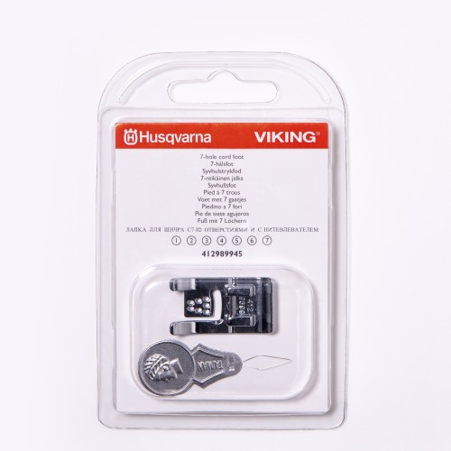 Voor machines uit categorie 9 is er een voet met 11 gaatjes met draadinsteker leverbaar (geschikt voor steken van 9 mm breed en het IDF systeem): Artikelnummer 920621096.