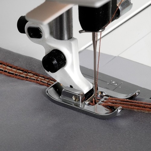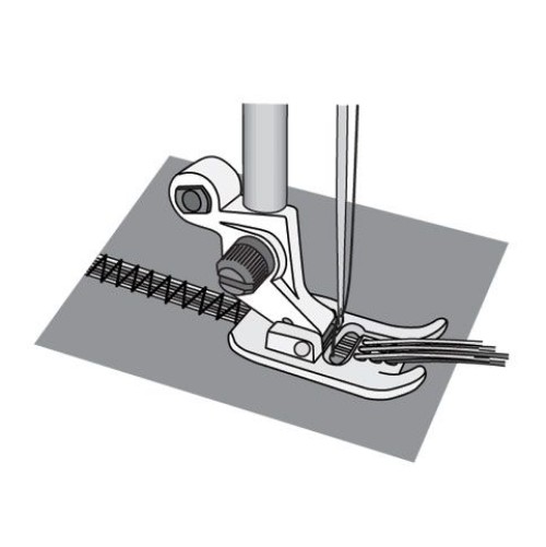 Maak unieke decoraties en naai ze in één keer vast. Voor het maken van originele versieringen met maximaal 7 of 11 draden (machinegroep 9 : 920621096) tegelijk. Siersteek of zigzagsteek, steekbreedte aanpassen aan aantal draden. Eventueel verstevigen.